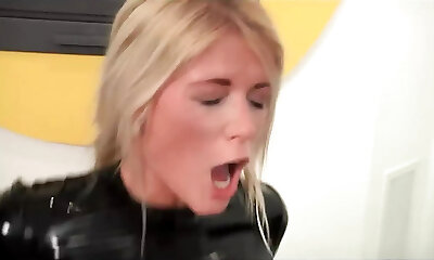 Stunning blondes pussy fucking cock sucking threesome in latex dress