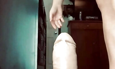 masturbation with fake penis and squirt, doggy style