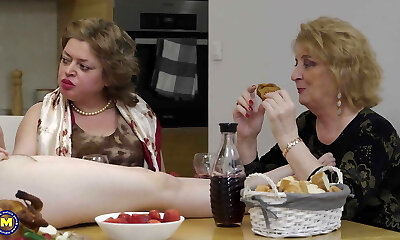 Dinner with pervert lesbians - 4 matures sharing one teen