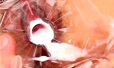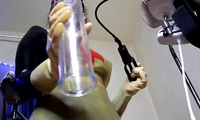 Ultra-kinky juggy whore is getting her gaped wet vagina teased with vibrator