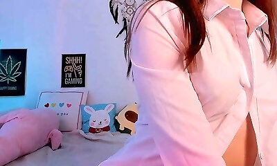 HOT GIRL IN TRANSPARENT WHITE SHORTS WITHOUT Undies