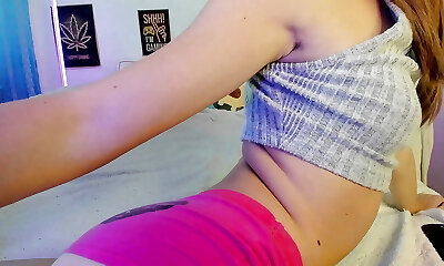 Cool redhead tight shaved cameltoe pussy fingering ass butt