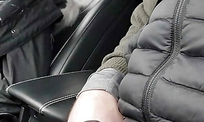 Busty blonde girl demonstrates her tits to the naughty taxi driver