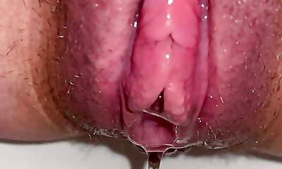 Pussy Pulsing, Open and Pees. Nice Pissing Pussy. Close-UP.