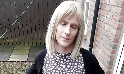 Amateur Crossdresser Kellycd2022 sexy milf masturbating outdoors with big cumshot in stockings and high-heeled slippers sissy fingering