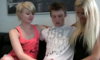 Cute blonde teen gives a hot handjob and a oral pleasure