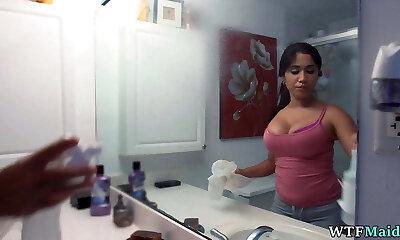 Thin Latina maid Sarah Lace drops it all and gets fucked firm