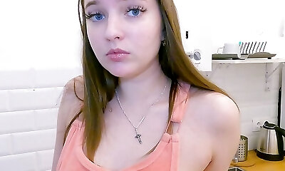 Nineteen year old busty cam girl with innocent face touches her big natural ti