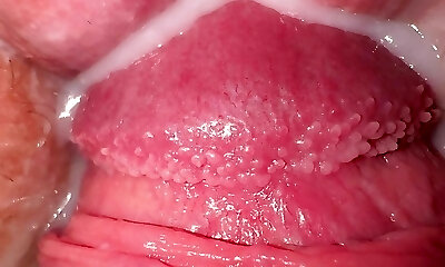 用肉管轻轻振动阴蒂. 渗透。 幽灵般的爆炸。 Gal射精。 特写。