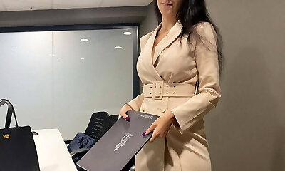 巨大的胸脯成熟的黑发纳迪亚白在办公室的桌子上猛击
