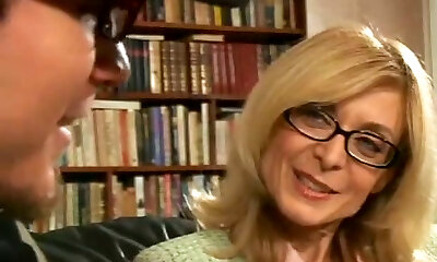 精彩尼娜在尼龙copulates年轻的家伙