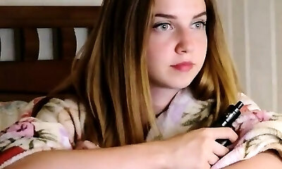 一个年轻的小鸡与天使般的脸成为一个完成nymphomaniac在她的摄像头演示和luvs展示了她的处女年轻